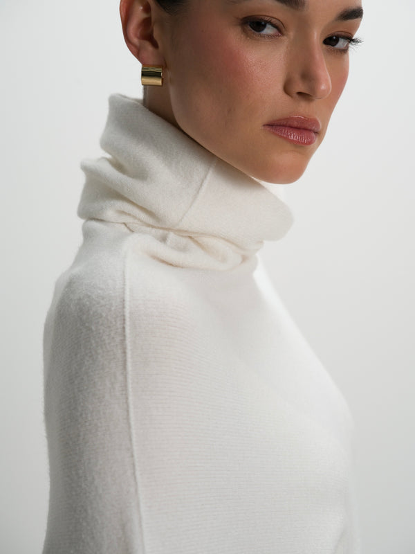 Asymmetric Draped Roll Neck | Ivory | Seamless Knit